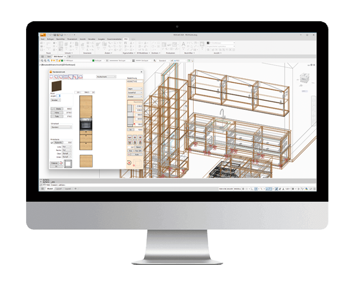 RSO-CAD ist eine auf AutoCAD® OEM basierende Planungssoftware. Zusätzlich beinhaltet das Programm viele eigene Funktionen, die den täglichen Arbeitsablauf bei der Planung, der Arbeitsvorbereitung und der Produktion wesentlich erleichtern. Auch bestehende Branchenprogramme können mit eingebunden werden. Der modulare Aufbau von RSO erlaubt – von der 3D-Planung und der 3D-Darstellung inklusive fotorealistischen Renderings, über auftragsbezogene Stücklisten, bis hin zur CNC-Anbindung – die komplette Workflow-Unterstützung. Alle Module haben untereinander logische Beziehungen. Die Einarbeitung für den Anwender wird dadurch wesentlich vereinfacht.